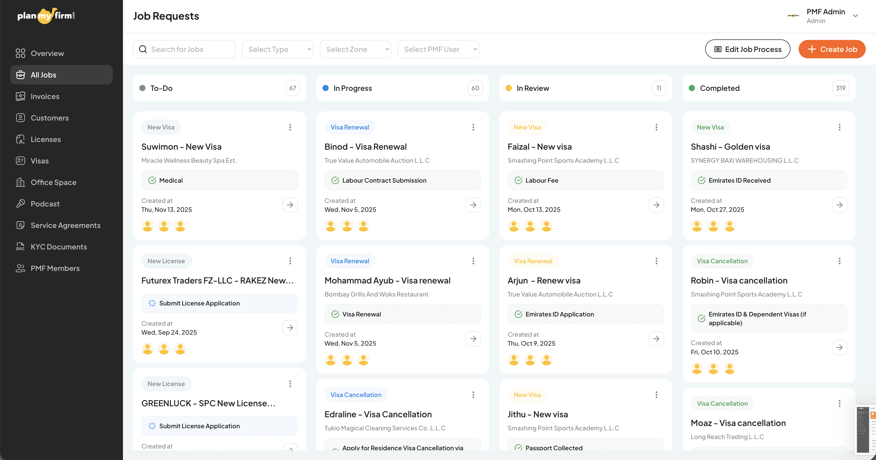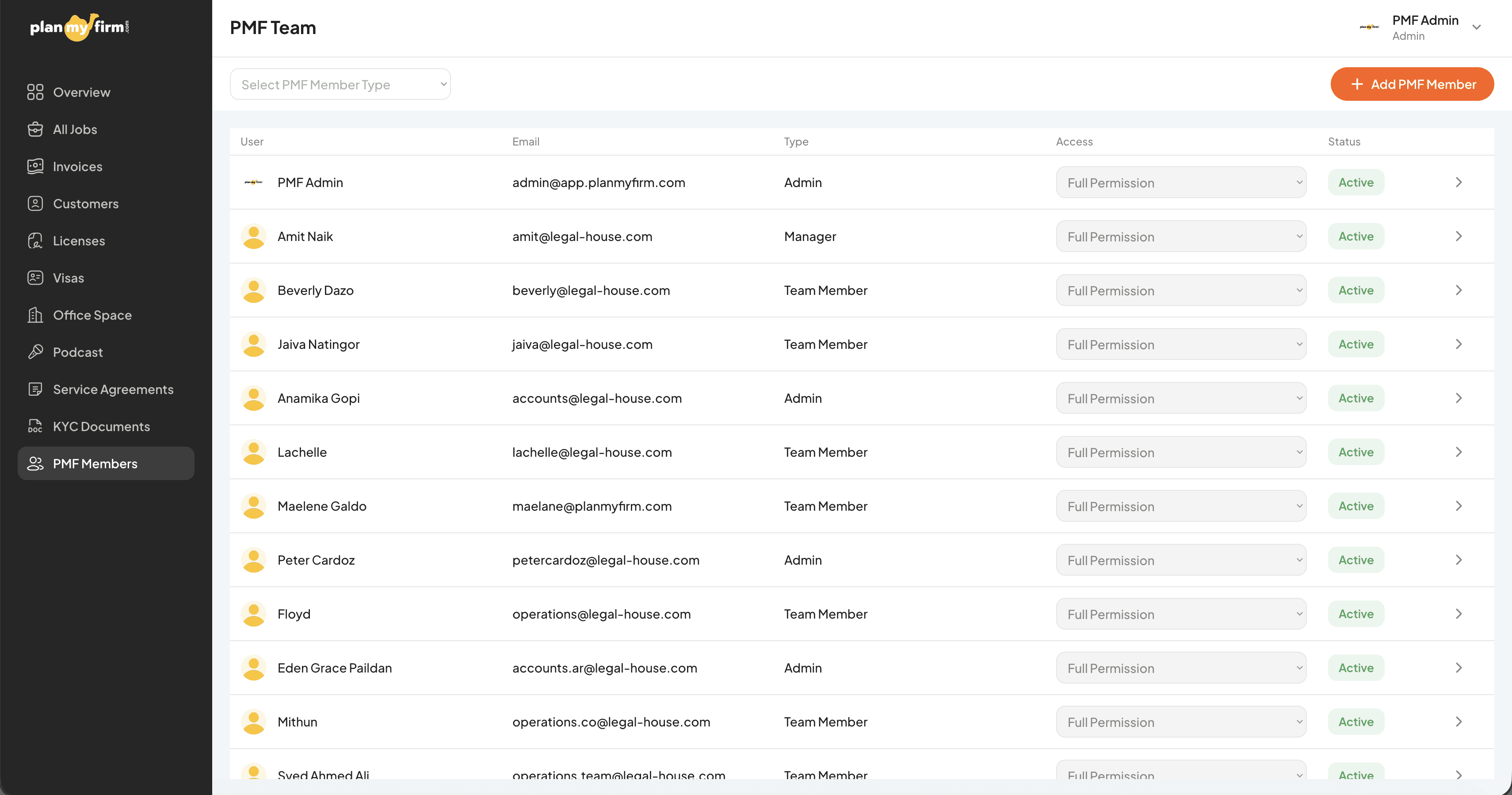 Planmyfirm’s operations team was handling: